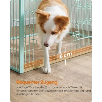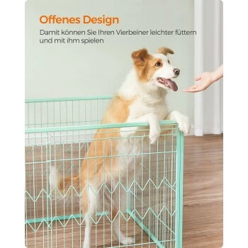 – Bei Verwendung in Innenräumen sollten Sie eine Matte (nicht im Lieferumfang enthalten) unter den Hundelaufstall für Wohnung legen, um die Stabilität zu erhöhen.