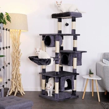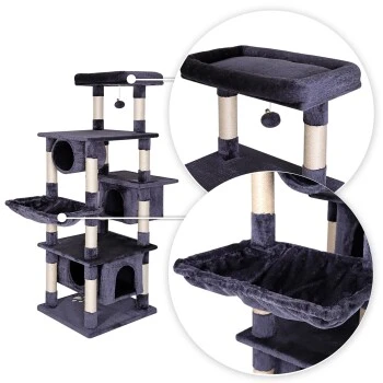 - MAßE UND FARBEN. Dieses hochwertige Katzenzubehör verfügt über die Maße 55 x 50 x 155 cm, die Höhlen über 30 x 30 x 25 cm/50 x 30 x 25 cm und die Plateaus über 55 x 30 x 8 cm. Das langlebige Katzenspielzeug ist in den Farben Hellgrau und Dunkelgrau erhältlich.