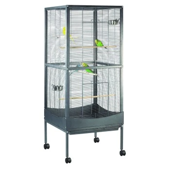 - Käfig auf vier Rollen (mit zwei Festellbremsen), die ein bequemes und leichtes Verschieben der Voliere ermöglichen