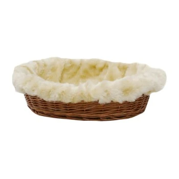 Dieser Ruhekorb ist aus Weide geflochten und besitzt einen dekorativen Überwurf aus hochwertigem Plüsch. Letzterer ist mit einem Gummizug versehen. Der Bezug lässt sich leicht abnehmen und ist bis 30 Grad waschbar.